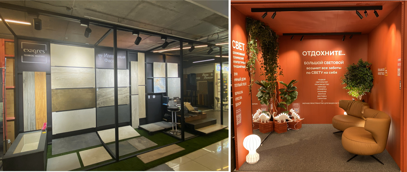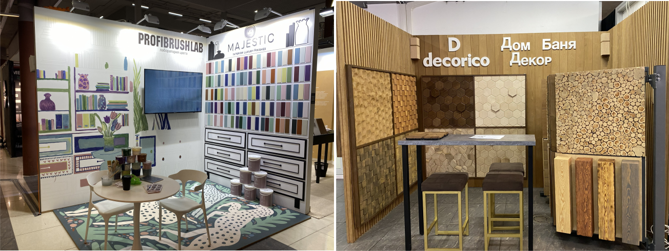 На выставке было представлено более 200 брендов – декоративные материалы, мебель, декор, теневые профили, освещение, двери и фурнитура, напольные покрытия, стеновые панели, керамическая плитка и искусственный камень, сантехника, отопление, климатические системы, камины, ковры и текстиль, остекление и многое другое.
